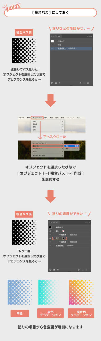 複合パスになっていないと、全体的にグラデーションがかからないので注意です!